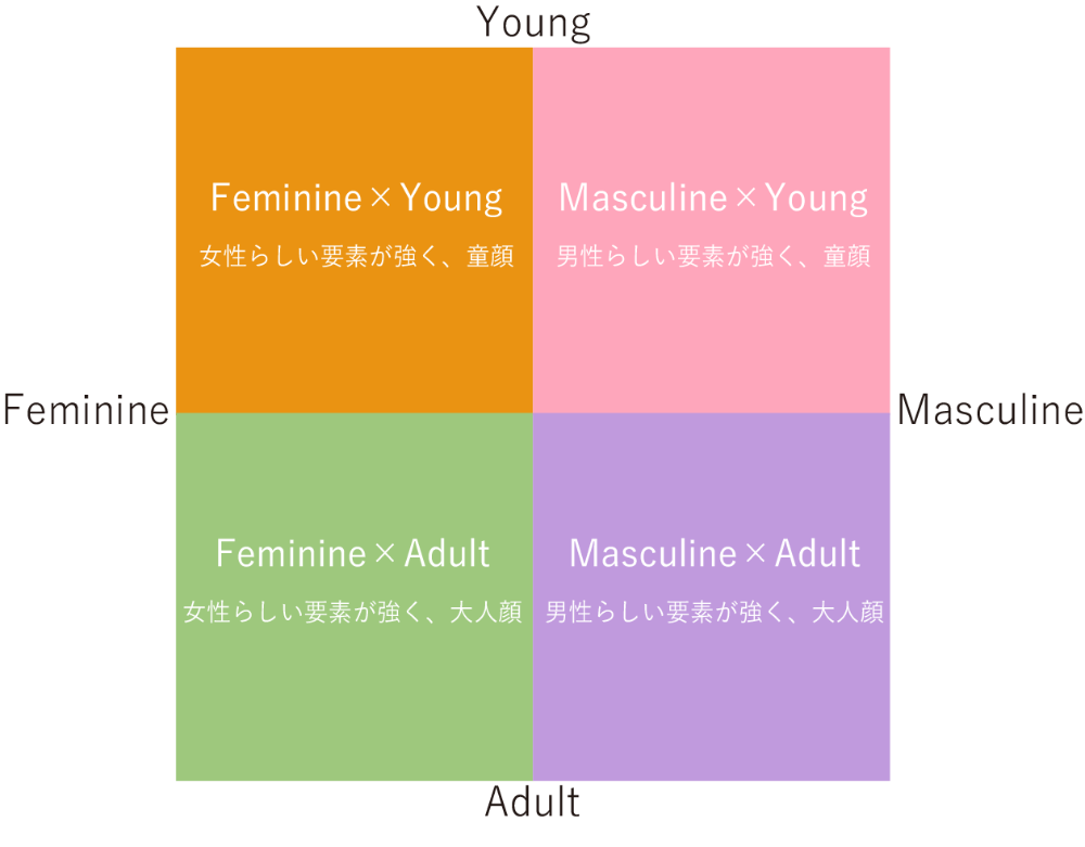 顔パーツ診断では、顔立ちのタイプを以下の4つに分類します。